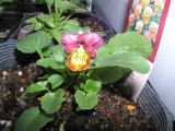 お待たせしました。種まきしたビオラが次々と開花しています。最初は27日。左がビビ・アプリコット・アンティーク、右はYTT、白から紫に色が変わります。今のところこの2種ですが他の種類にもつぼみがたくさんあがっています。9cmポットへ植え替えが遅れて反省。。