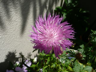 | 4/25 | 今年のオープンの目玉、ハーブのクレイトニアその後です。 クレイトニア(スベリヒユ科) →→![]() 右のように最初の花がついた花茎がぐ〜っっと伸びてきました。 オープンの日にこれをみたお客様から「花筏」みたい、という声が何人もから聞こえました。さすがにみなさんよくご存じですねえ。 ハナイカダは樹木で、私は見たことはありませんが調べると同じような花のつきかたをしていますね。黒い大きな実がぽつんとつくようです。クレイトニアは1年草に属します。いただいたセージより、すっかりこちらが主役となりました。ほんとうにおもしろい植物で、すでに種が欲しいという方もあり、種とりもがんばります。(うまく採れるかな?) ![]() はじめての黒い矢車草、ほんとに黒い!高性、種から こちらも矢車草 これは矮性(購入苗) ![]() セントランサスレッド、花はウスベニカノコソウに似るも葉が全然ちがう。国華園の種から。 右はふわふわかわいいウサギのしっぽ。バニーテール。いただきもの。 |