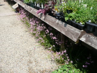| 4/29 | ティアレラ・スプリングシンフォニー ![]() アグロステンマ(麦なでしこ) カンパニュラ・パツラ 可憐なすずらんが 咲いてきました。冬、地上が何もなくなっていて、何の鉢だったかもわからなくて・・・。こんどこそちゃんと名札をつけておきましょう。ピエール・ド・ロンサールの蕾に色が見えてきましたよ〜♪ ![]() 今日はさわやかな好天でした。若葉の輝く野山を見ながら、花仲間4人で園芸店巡りやお食事ツアーに出かけました。運転できない私は車に乗せていただいてありがたいことです。 そんな私たちの行き先はまず三木市の風雅舎です。 ![]() 苗の陳列台の下にリクニスフロスククリが花盛り。それが自然な感じでとってもステキ。そしてモデル庭園の椅子のある風景です。 ホウの発色のよいセリンセさてここのスタッフさんはみんな園芸に大変詳しいかたばかりです。今日はそのスタッフさんがわからないと、逆に質問された植物ですが、仲間にちゃんと答えられる人がいました。 ![]() みなさんはこの植物がわかりますか?私は初めて見ました。売り物ではありませんのでHPに載せたいと写真に撮らせていただきました。これはウマノスズクサ、とくにアリマウマノスズクサと言うそうです。食虫植物。私は名前を聞いたことがあると思いましたらやはりジャコウアゲハの食草だそうです。ふ〜ん、こんなものだったのね。 有馬で見つけて牧野富太郎が命名したとか。 遅いお昼は知る人ぞ知る評判のスパゲティーのレストラン。ここはいつも花のコンテナがセンス良く飾られています。若いスタッフばかり、きびきびと働いています。 ![]() さらに園芸店をまわり、荷物は増える一方でした。(笑) 近く私たちオープンガーデンの団体でTV取材2つ、雑誌の取材も1つあるため、舞台となる仲間の庭にも寄ってみたり、夕方まで走り回りました。 |