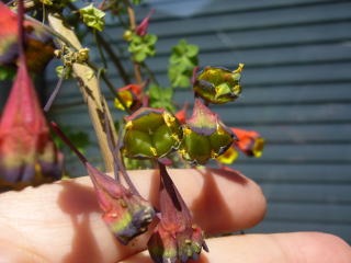 | 4/13 | ゲウム・リヴァレゲウムってダイコンソウですよね。赤とかよく見るのですが、う〜〜んこれはいい。味わいあるシックなよいお色です。種プレゼントのお返しにこんな素敵な種をいただいてしまいましたの。ありがとう。 うつむいて咲いているのでのぞき込んで撮りました。フウリンダイコンソウとも言われているようです。 ネモフィラの新品種これも花ともさんからいただいたもの。今その記録がみつからないのですが、たしかイギリスに関する名前がついていました。ありがとう。名前はチェルシーブルーでした。 ![]() ![]() おなじみ ヒメサボンソウ 全景とアップ ![]() ![]() これも定番 コツラ 全景とアップ トロパの花 ![]() 上、左はブラキセラス、右は今年初めてのレピドム。種からで、3本寄せ植えにしていましたら、カラフルな3兄弟でした。ツルがめちゃくちゃに絡まっているのでできるお芋は何色かは全くわからないわけです。種もきっと自然に交雑しているでしょう。1鉢で3度おいしい、トロパでした。左をご覧下さい。赤青黄のトリコロールの種を発見。ぷっくりふくらんではちきれそう〜綿棒でちょっと手助けしてあげました。よい種が採れそうですね♪ さて前回書いた繊細な花、メラスフェルララモーサが、今日行った三木市の風雅舎にはありました。さすがの品揃えです。1ポット800円なり。ただし花はもう終わりかけでやたらと背が伸びていました。 このお店には毎回神戸のオープンガーデンのガイドブックを置いてくださるのですが、聞いてみたらもう全部なくなったそうです。ここはね、見本と書いた1部のみ机の上に出してあり、欲しいととくに望む方だけに渡すやりかた、私たちが希望したとおりにやってくれていてよかったです。だってね、無料ですと積み上げているとあっという間になくなってしまうのが常ですから。オールカラーで、デザインも仲間の一人がやってくれた自慢の冊子なので(私たち委員もデータをパソコンで入れました)、大事に渡したいと思っていました。1000部印刷したのですがもうほとんどないようです。(印刷は神戸市が支援のかたちで。従って無料配布です) ユーフォルビアの赤い茎のおもしろいものがあったので買ってきました。ここへ行くと何かしら興味深い植物に出会えるのです。 メラスフェルラ・ラモーサで、区切って検索するとありました。BBSでちび姉さんに教えていただきました。 ありがとう。 |