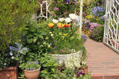| 4/24 | 昨日と打って変わって良いお天気。,たくさんのお客様がお見えになりました。 毎年おいで頂くおなじみのかたが多かったです。聞き取りにくい声で失礼いたしました。 みなさんによろこんでいただけて、やっぱりオープンガーデンに参加してよかったと思いました。私が差し上げた種から花を咲かせて、その種をまた差し上げたというお友達を連れて来られたかたもありました。そんな報告を聞くとうれしいですね。(^^) ![]() 今日見て頂いたお人形です。 今年の目玉のつもり(^^;)のコンテナ トロパ・アズレウム ![]() ![]() 今日パッと開いたはではでチューリップ 更にその上をいくフリンジ咲きチューリップ 今日のお客様の人数は朝の時点でもう数えるのをあきらめました。何人と報告すべきか・・・(^^;) |