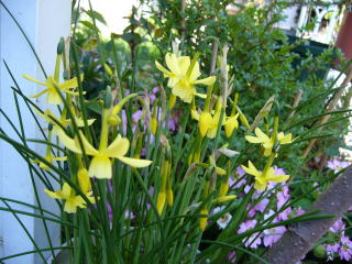 | 4/5 | よいお天気で,暖かい一日でした。 でも庭仕事ではなく、イカナゴの釘煮を親戚に発送したり、また買ってきて炊いたり・・・でも今日でもう終わりにします。一度に1kgずつしか炊けないので、しかも日によって炊きあがりの出来がちがって、うまくいったと思えるのは少ないです。でもね、昨日の出来はこれまでで一番良かったと自分で思う次第。気をよくしてもう一度と今日炊いたけれど,昨日には及ばなかったです。同じ分量で炊いてもちがってくるのですよ。魚の大きさ、鮮度、火加減それに炊く者の気合いかな?? 細身の水仙です。鉢植えですが毎年ちゃんと咲いてくれるのがうれしい。 セリンセ 妖しい紫これはこぼれ種で生えていたものを育てました。紫の出方がまちまちになりがちですがこれはいい方かな。 ![]() 残りものの苗でハンギングをつくりました。もうすぐコツラが黄色の玉を咲かせてくれるでしょう。 |