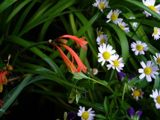 | 4/25 | 良いお天気かと思うもつかの間、突然雷鳴がとどろき雨、それも霰か雹か、ころころアスファルトを転がって行きます。オープンの準備をしていたものをひっこめたり、また出したり・・・ でも短時間で晴れてほっとしました。 第3日目も無事に終えることができました。来て頂いたすべてのかたに感謝申し上げます。 このホームページを読んでくださっているかたも多く「庭主病気のため」などと書いたものですからご心配やお気遣いをいただきありがとうございました。聞き取りにくい声でお話してすみませんでした。でもだいたいは通じたかな?(^^;) また来年もできたらいいなと思っています。これからもどうぞよろしくおつきあいくださいませ。 フェリシア 今日の門前チューリップ 魅力的なスィトピー ファセリア一眼のマクロレンズでも撮ってみたのですが、とくに↑ファセリアの中のレース模様、本日の所はすべて失敗でした。従ってこれらはコンデジの写真です。(^^;)残念。 写真教室のお仲間も来てくださったのですが、どんな写真が撮れましたか?またBBSで見せてくださいね。 すぐご近所にもオープンのお宅があるのですが、うちから流れたお客様が家に上げてもらってお茶の接待を受けたそうで、みんなとても喜んでお帰りでした。夫までご馳走になったというので私もあとでうかがいました。(笑)ご主人様がコーヒーの係。奥様のお得意の絵の作品も見せていただきました。 ![]() こうしてオープンガーデンも楽しく、無事に終わりました。 みなさんありがとうございました。またお会いしましょう♪ |