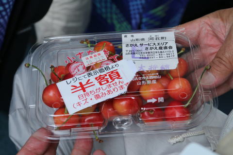 | 7/23 | 東北旅行のこぼれ話 2、サクランボと寒河江 山形といえばこの時期サクランボですね。でももう終わりかけでした。車窓から見るサクランボの栽培畑。天井にはビニール屋根をかけて、低く栽培しているのが意外でした。添乗員さんが昔サクランボのアルバイトをしたことがあったそうです。脚立に上り、日に当てるためにどの葉をとってどの葉を残すか、手間のかかる作業だったようです。サクランボは生産地でも大変高価らしいですがそれも理解できると言っていました。 サクランボの栽培 多分このビニールの中寒河江あたりにたくさん見ることができました。休憩に寄った高速道寒河江パーキング。もしかしたら最後のサクランボを売っているかもしれませんというから期待! ありましたよ!!しかもうれしい半額です。 500円→250円当日中に召し上がりくださいとのことでホテルでおいしくいただきました。 翌日もう一度寒河江パーキングに寄ったので、トイレもそこそこにみんな産直売り場にいきましたがもうサクランボはありませんでした。本当にあれが最後だったようです。 寒河江と書いてさがえと読む。この名前は園芸をやる人にはおなじみの地名でもありますよね。 私も知っていました。大柄のホスタで、有名品種であり、ここで作出されたそうです。 3、あつみ温泉の宿 上級ランクの宿でまたとない体験を楽しむことができました。 お料理もお部屋も庭も私にはもったいないような宿。 ![]() ![]() 中でも一番のお気に入りはこれです。↓自由に選べる浴衣。 部屋に置いてある浴衣以外にここから選ぶこともできます。これは楽しい〜。どれにしようか散々迷った挙句私のチョイスはこれでした。 一晩だけのお楽しみ♪少々派手ですがせっかくの機会ですからね。 |
