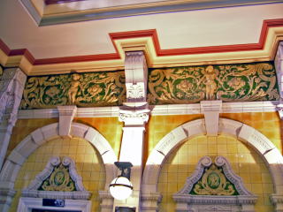 | 駅の床にあるタイル絵(複製) ロイヤルドルトン製のホンモノは今、博物館に保存 |
