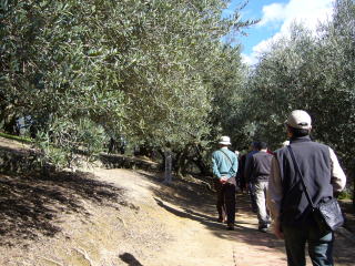 オリーブの畑?の中を巡ります。シルバー色の葉が美しい。