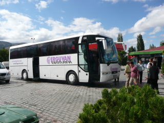 これが私たちのバス。14人とガイドさん、添乗員さんを乗せてイスタンブールからカイセリまで1600kmを走りました。運転手さんはどうも断食を守っていたようで(食べたり飲んだりしているのを見なかった。ガイドさんはしっかり食べていた)、交代要員もいないし、重労働だったのではと心配でした。30日、カッパドキアの朝食にやっと私たちと一緒のテーブルについた姿を見て、「断食がやっとあけたのねえ」と私たちもほっとして話したことでした。物静かなかた。