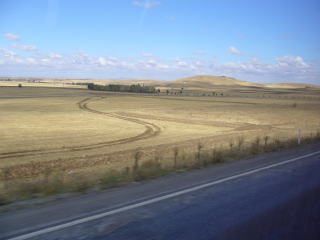 畑というより牧草地かな?広い草木も生えない荒野を開墾している。所々に緑の木が植わっていて荒涼とした景色もどこかほっとさせられる。美しいとも思う。それが人の営みであろう。