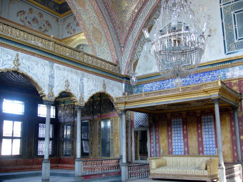 スルタンの大広間 右はスルタンの天蓋つきの玉座